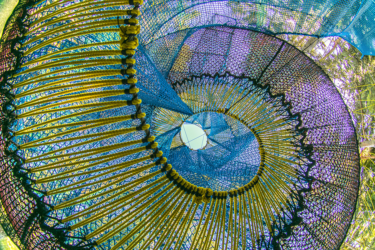 Au milieu des arbres, dans le Pilat, d’immenses filets suspendus dans le vide… pour un espace de jeux incroyable entre ciel et terre !