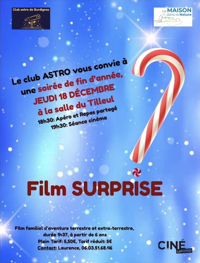Le club astro de la Maison dans la Nature fête la fin de l’année! Nous vous convions à une soirée le jeudi 18 décembre, à la salle du Tilleul. 18 décembre 2025 18h30 Salle du Tilleul